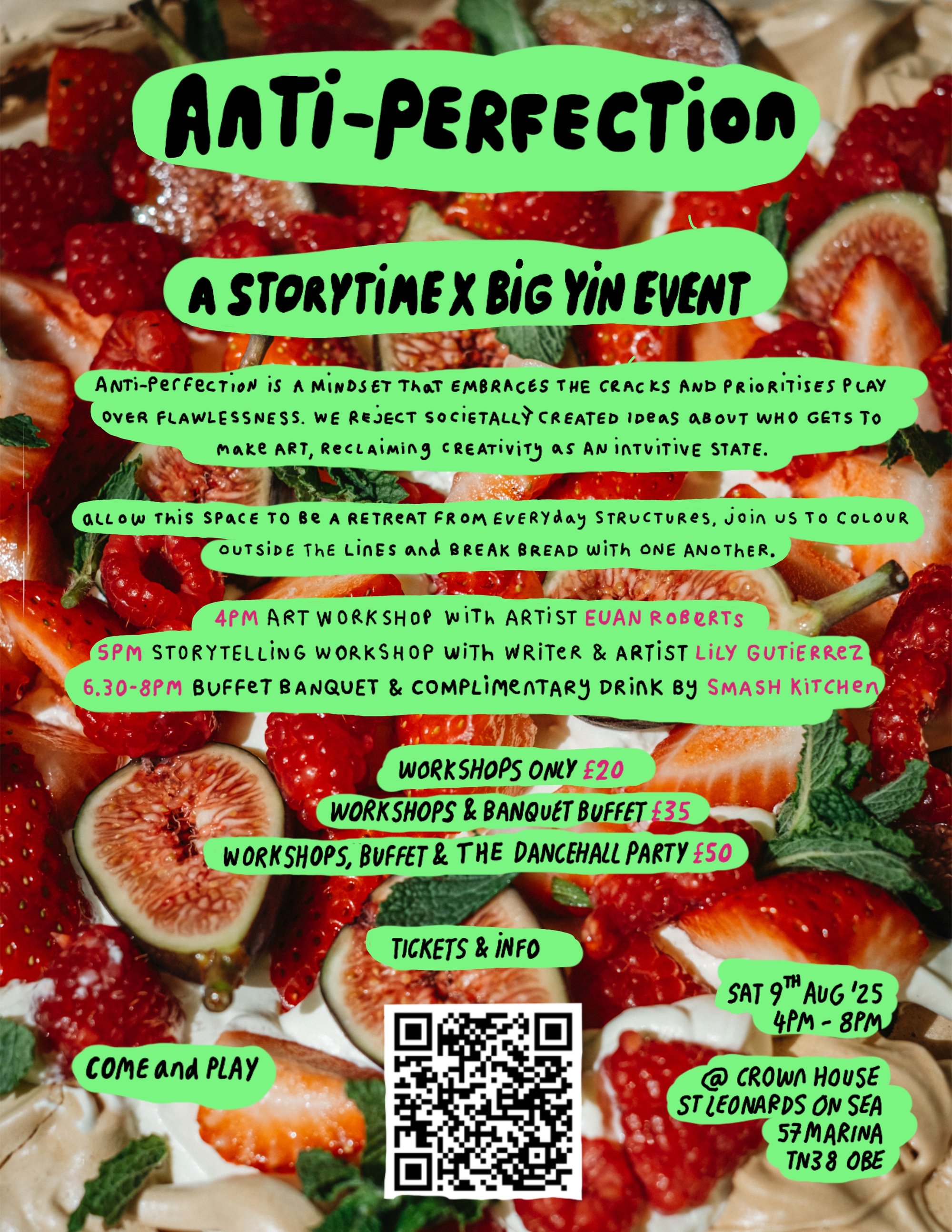 Followed by a story-writing workshop where you’ll play around with storytelling and writing your own - fun, silly, playful (no pressure to share!).